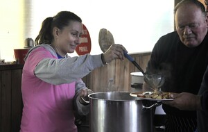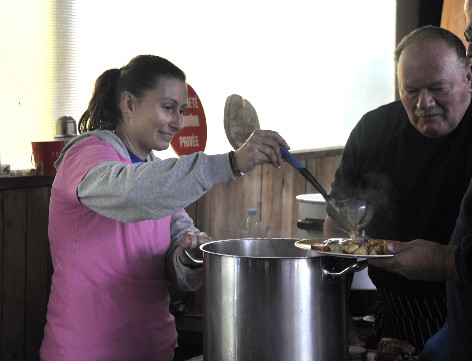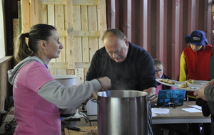 Un grand merci aux marmitons du jour, qui nous ont concocté un succulent repas (kassler, sauce forestière et pommes de terre sautées) Jeanne et Christophe et leurs aides Floriane, Sabrina et Alexandre.