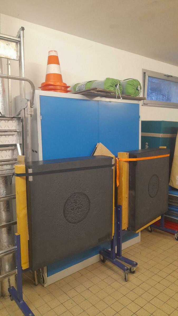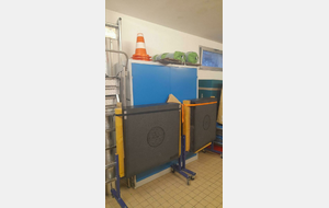 Ca y est, les cibles et le matériel ont déménagé à l'école élémentaire Lixenbuhl, les câbles supports sont installés, manque le complement en filet pour nous permettre d'y tirer.