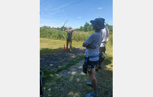 Objectif, atteindre un oiseau de bois de 2 cm de large sur 3 de haut, à 30 m pour les adultes et 15 m pour les jeunes. Pour corser la difficulté, tous ont tiré avec le même arc d'initiation ... Nous félicterons pour leurs victoires, Fadi chez les jeunes et Lucas chez les moins jeunes. Bravo à tous les 2 pour leur persévérance !
