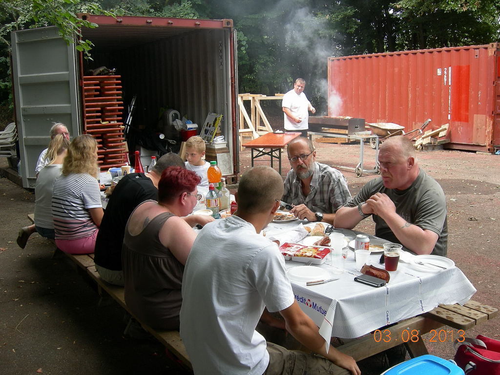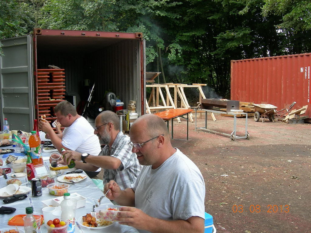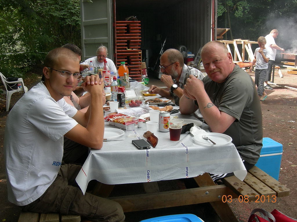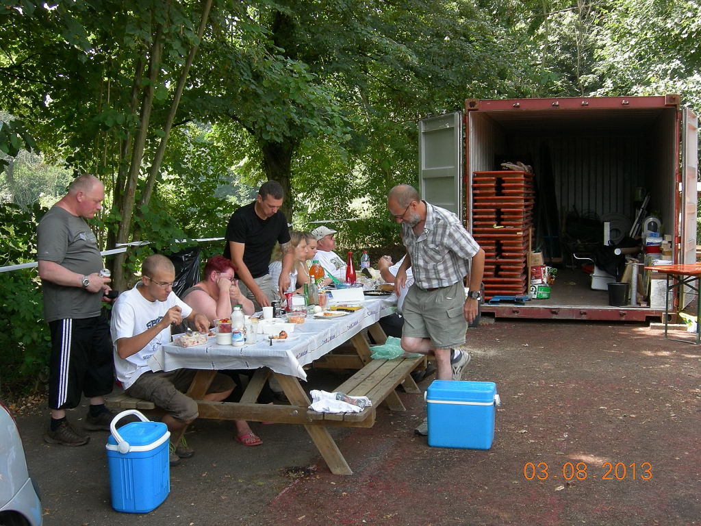 Aprés 15 jours de travaux, pour débrousailler et créer les cheminements et les 21 pas de tir dans la végétation, installer les containers, rapatrier les cibles et le matériel resté stocké au fort Uhrich, trier les cibles, remonter d'anciens chassis et en faire de nouveaux, les Ataliens ont improvisé (comme ils savent si bien le faire) une première journée détente sur le nouveau terrain.