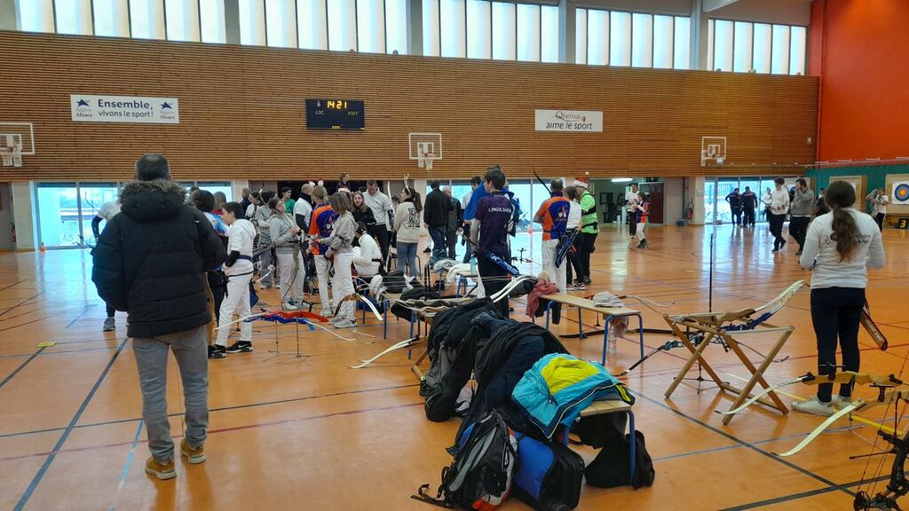 7 archers de l'ATAL ont fait le déplacement, accompagnés de leurs parents, du président et de l'entraineur pour s'initier aux compétitions. 90 d'archers de 13 clubs étaient présents venus de toute l'Alsace.