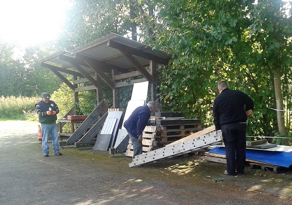Ce samedi 08 octobre, l' ATAL a convié ses membres à une nouvelle journée de travail pour maintenir ses installations en bon état. La météo clémente mais fraiche, nous a permis de réaliser une partie des travaux prévus, la révision des cibles d'échauffement et des birdies, l'abattage d'arbres secs, le rebouchage des nids de poules, la coupe d'une partie des arbres en bordure d'étang, la tonte et la poursuite des travaux sur la future porte du préau.