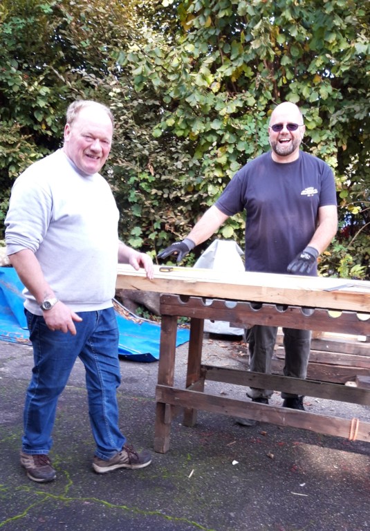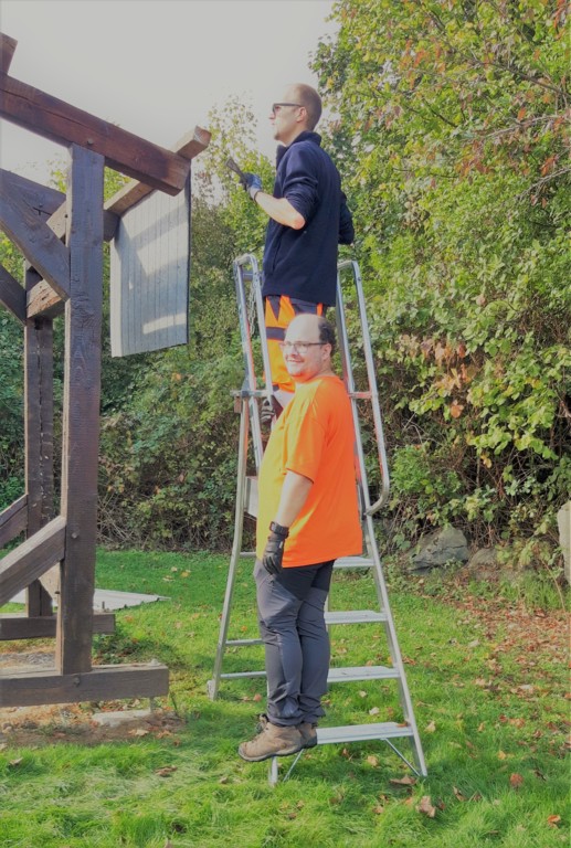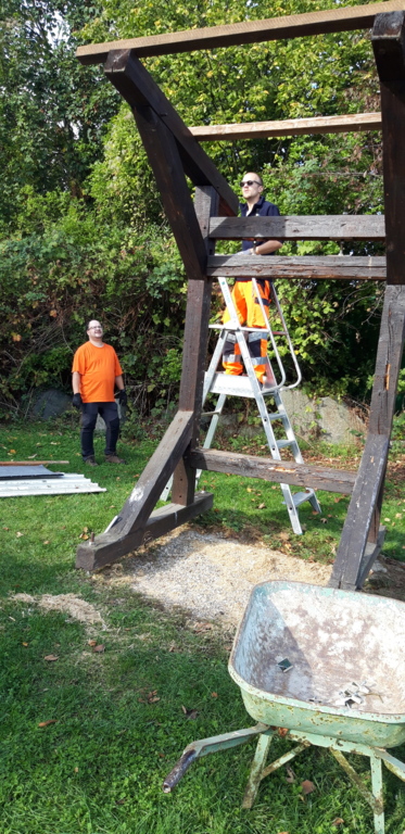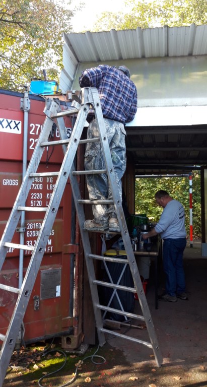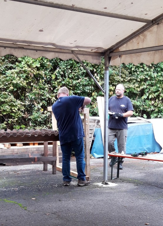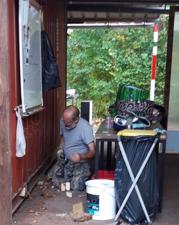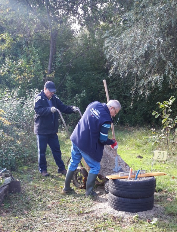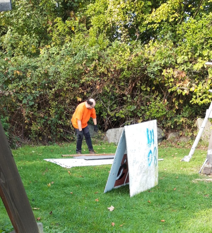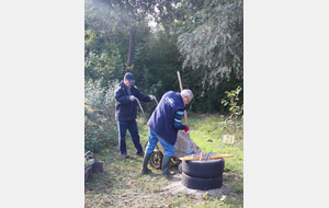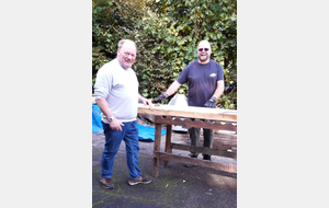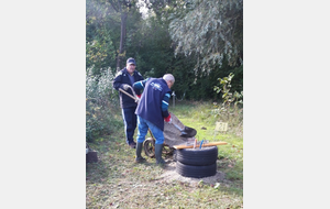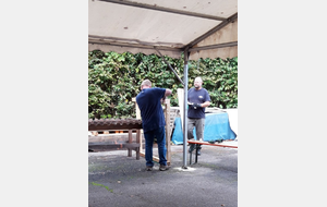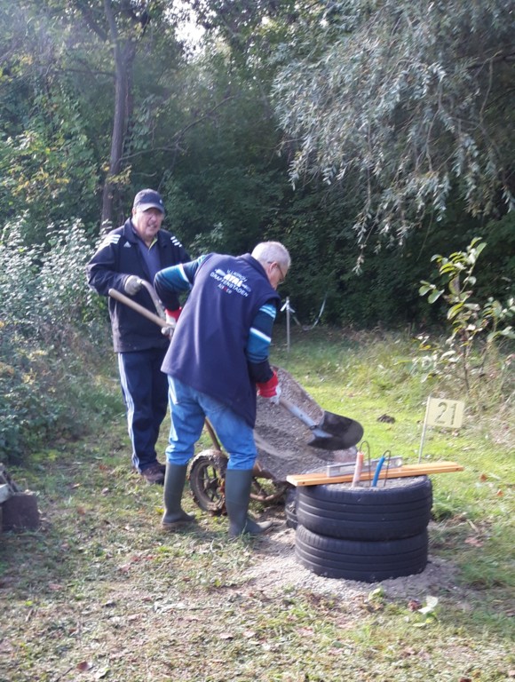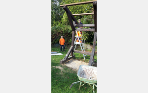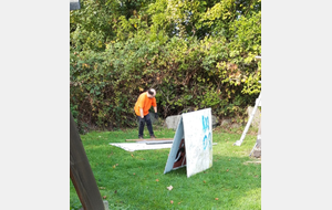 Au programme, entretien, réparation des cibles, abattage d'arbres morts, fabrication d'un nouveau chassis pour la cible 13 écrasée par un arbre, démontage et remplacement de la cible d'échauffement à 25 m, remplacement du pas de tir de la cible 21, rangement des 3D et démontage des bâches du chapiteau pour l'hiver