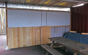 13 ataliens étaient présents malgrés la pluie soutenue du matin et se sont attelés à améliorer le préau, arranger et sécuriser les cheminements et les pas de tirs.