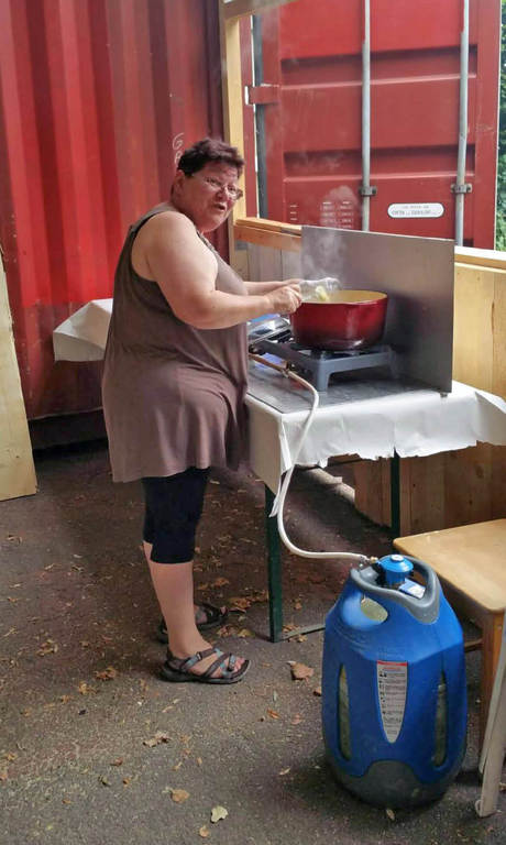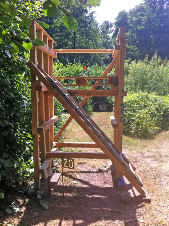 Le stock de planches a été refait en récupérant des caisses de transport que nous avons démontées, les haies de l'enceinte ont été taillées, le parcours amélioré avec l'installation de 2 pas de tir en hauteur et le toit au dessus du four à tartes flambées a été refait et agrandit.