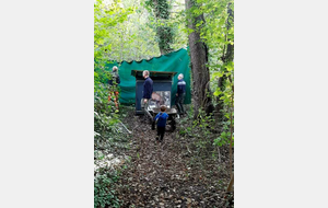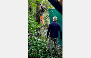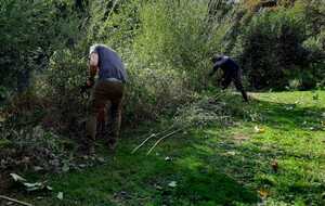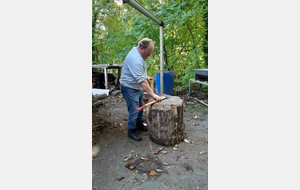 Au programme réfection des protections derrières les cibles 7 et 11, tonte du terrain, débrousaillage, taille de la haie sous la ligne haute tension, démontage et rangement des bâches de toît du chapiteau, finir de fendre le bois, couper les branches génantes, réparer la clôture derrière la cible 19, ranger l'espace couvert pour l'hiver et diverses bricoles.
