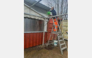 Le chassis pour le kodiak a été réalisé, celui du crocodile commencé, les blasons collés, les 3D réparés repeints, les ronces le long des pas de tir taillées, la haie extérieure taillée et la clôture réparée, les plantations de haies faites, les mousses ressérées, "l'embarcadère" refait et consolidé, les panneaux translucides du préau nettoyés et les nouveaux pas de tir créés etc ...