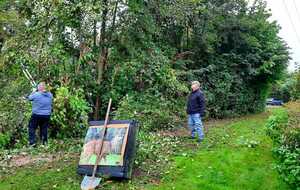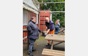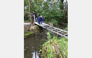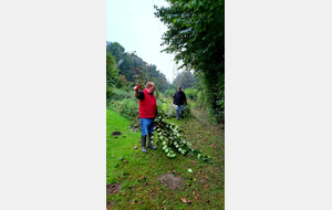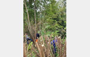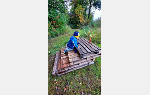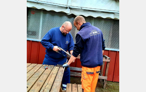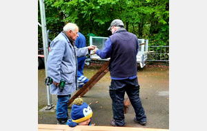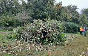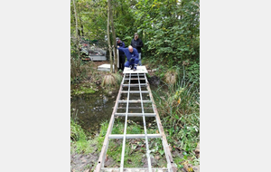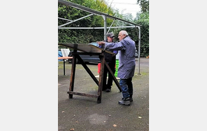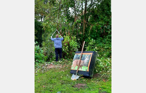 Samedi 16 octobre nouvelle journée de travail pour avancer les travaux au terrain. Une météo bien grise et fraiche mais sans pluie et 17 personnes présentes nous ont permis de bien avancer, finalisation du pont de la 19, mise en place des nouveaux chassis des cibles 1 et 21, démontage des anciens chassis des cibles 1, 21 et 19, nettoyage des gouttières, ramassage des déchets sur le parcours, tri et rangement des 3D, tonte et taille de la haie sous la ligne haute tension.
