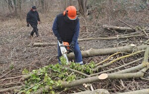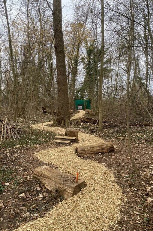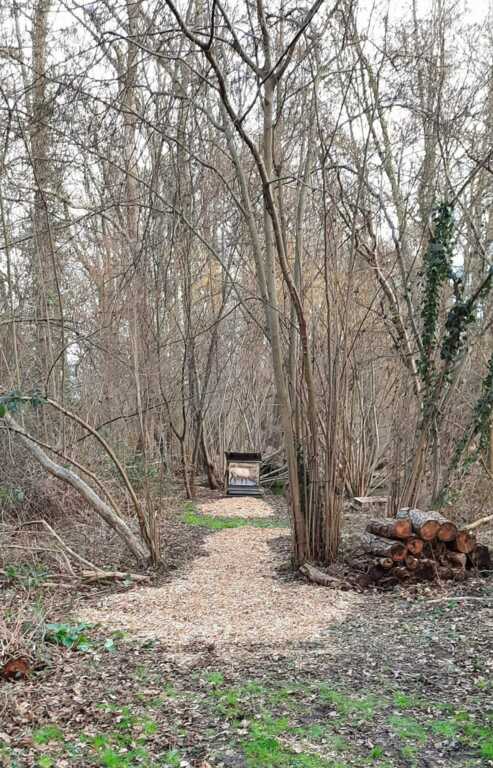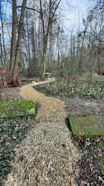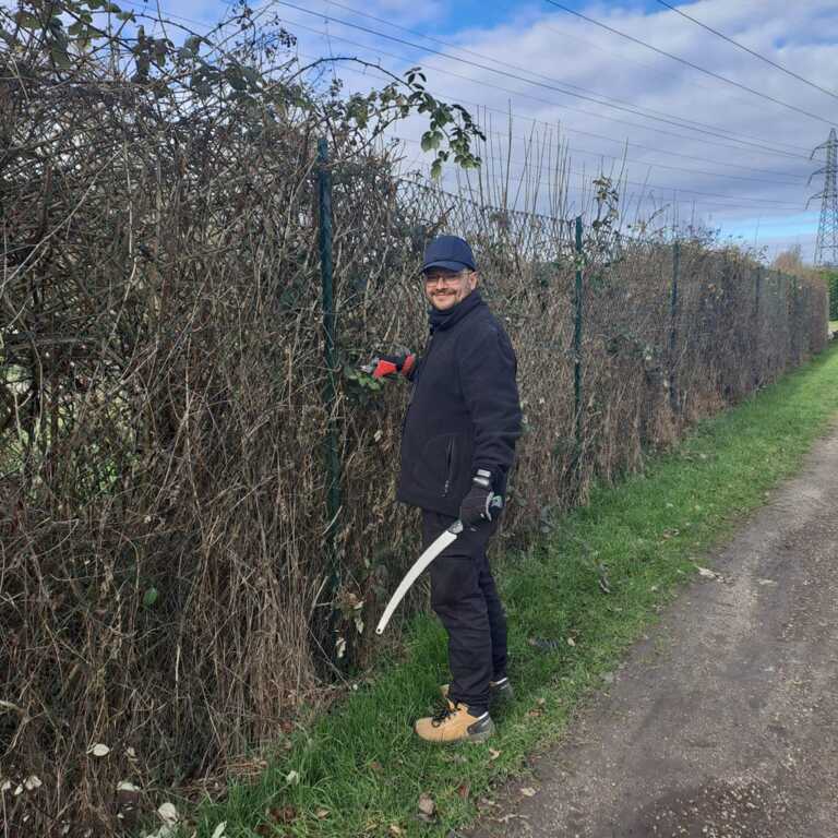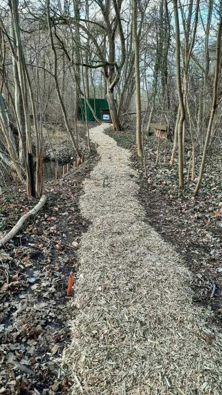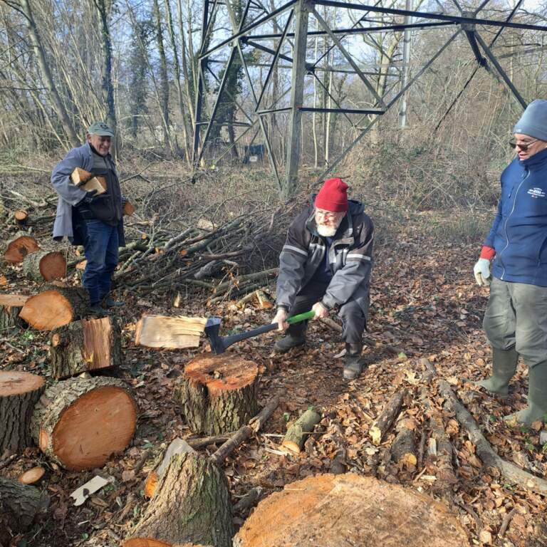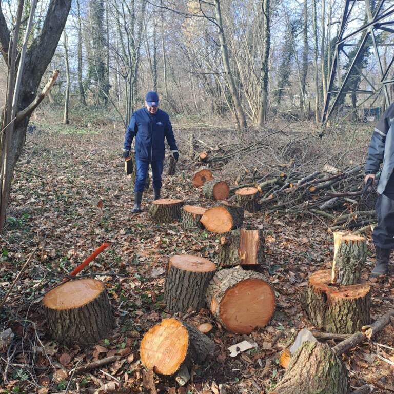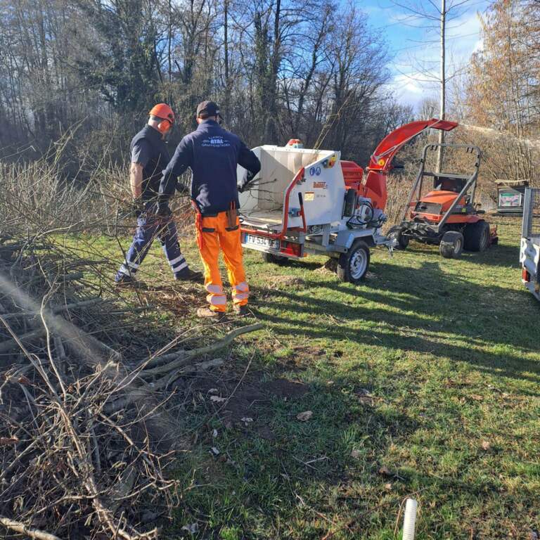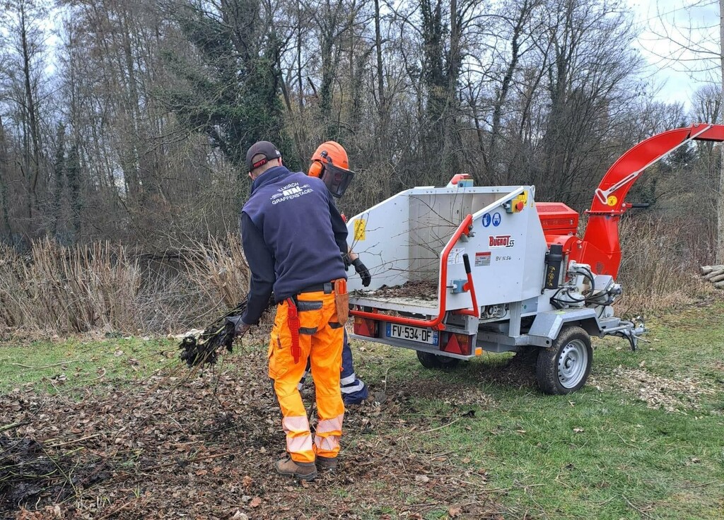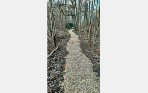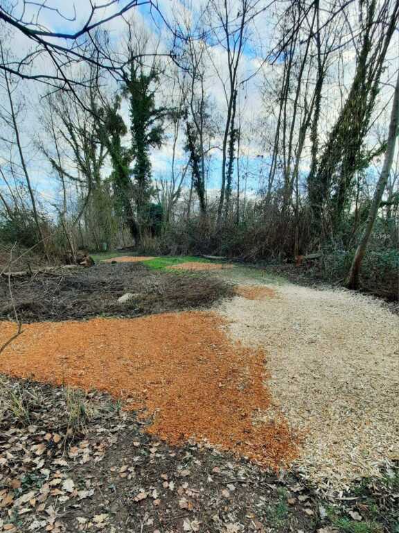 Les tas de branches, résidus de nos précedentes VA et l'abattage d'arbres sous la ligne haute tension par les bucherons mandatés par RTE ont motivé l'organisation d'une opération de broyage et découpe de bois. Travaux qui nous ont permis de mettre des copeaux sur les cheminements boueux du parcours et stocker du bois pour nos futurs barbecues et tartes flambées. La haie d'enceinte a été retaillée, des blasons collés, les taupinières égalisées. Une journée bien remplie !