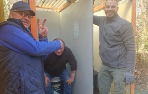 Les cibles d'échauffement ont été ressérrées, la cible n° 19 ré-installée, la haie taillée sous la ligne haute tension, le bois préparé pour le poële et le barbecue, les copeaux mis en place sur les chemins, les nouvelles toilettes sèches ont été finalisées (bravo Rémy) et les anciennes démontées, Carlos en a profité pour poser les jalons du nouveau parcours 3D, une journée bien remplie.