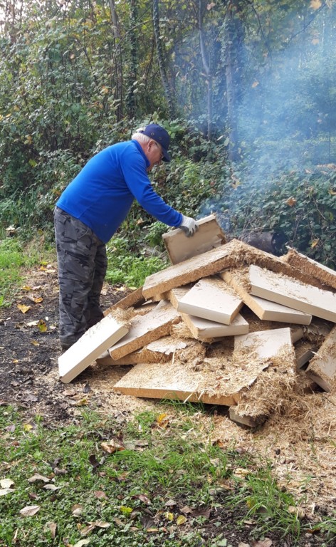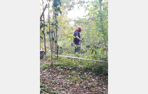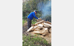 L'aprés midi sous le soleil, nous avons réinstallé la cible 13, débrousaillé et déplacé le birdie cible 10, découpé des arbres morts et brulé les bandes de stramit usagés.