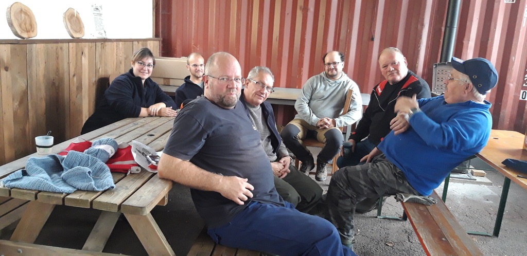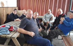 Avec la pluie annoncée qui n'est pas venue ... nous avons démarré en salle le matin sur le mur de tir qui avait grand besoin d'être remis en état, aprés avoir remplacé les bandes de stramit, resserré l'ensemble des cibles et fait l'inventaire du matériel, nous avons rejoint le terrain pour un barbecue.