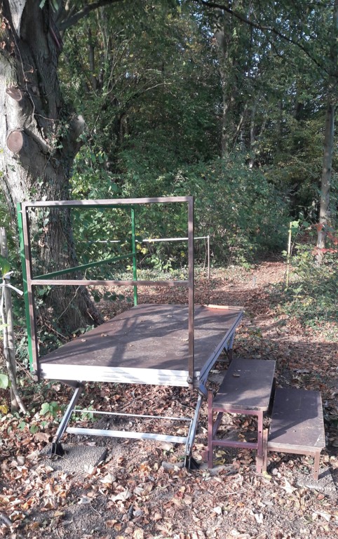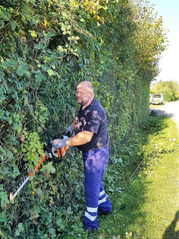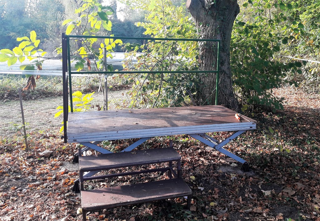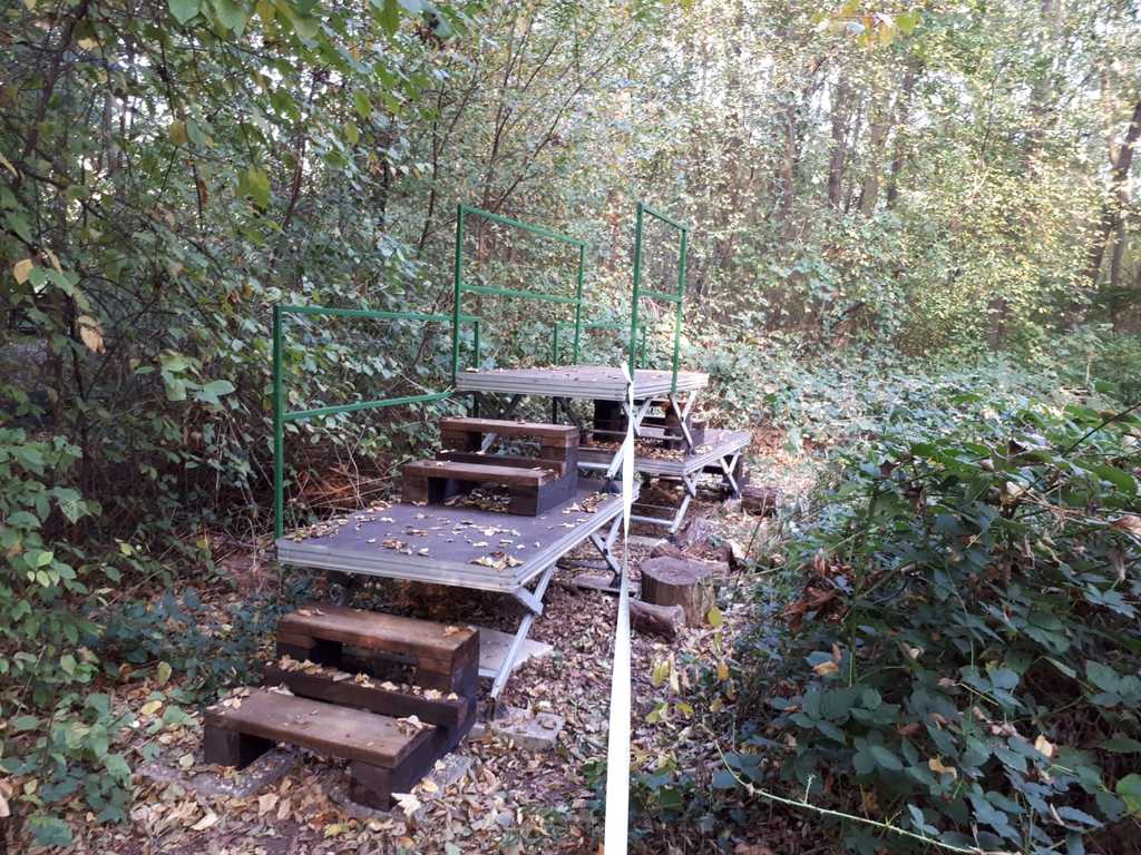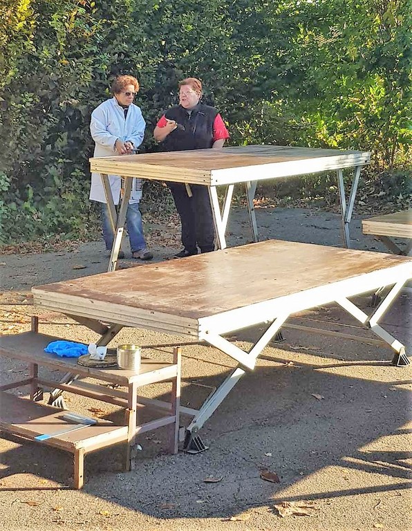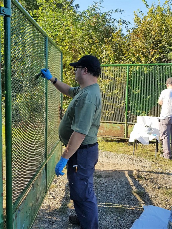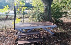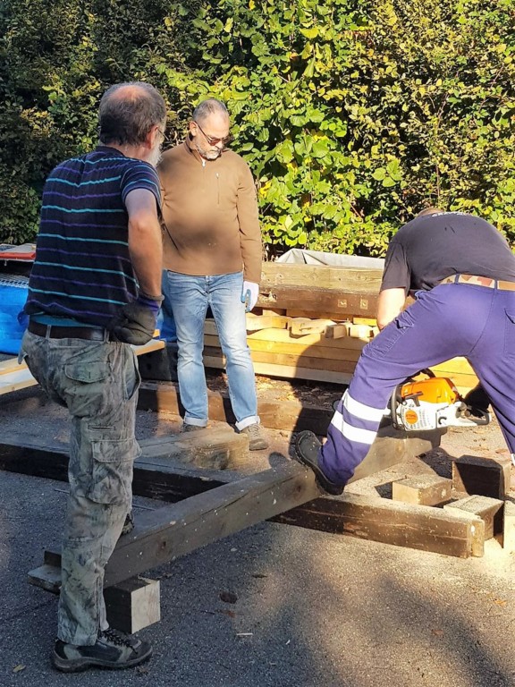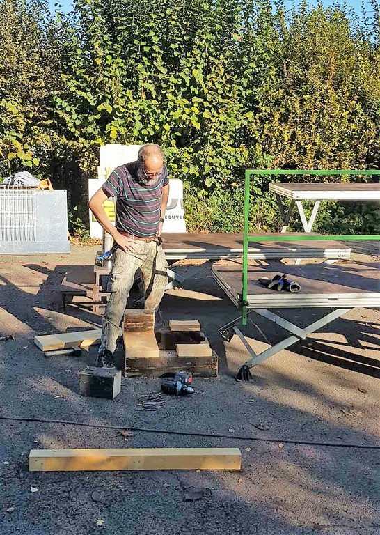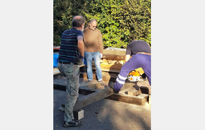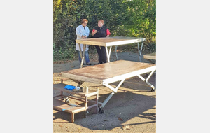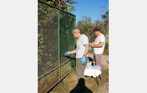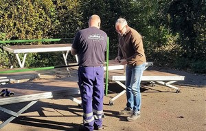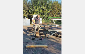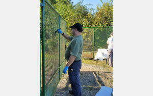 Une bonne partie des travaux prévus ont pu être réalisé, la taille extérieure des haies de la clôture, le décapage et la 1ère couche de peinture du portail, le remplacement des pas de tir, la peinture des gardes corps, la lasure des praticables, la découpe de bois, le collage de blasons, le nettoyage des gouttières et les préparatifs pour la pose de l'extension du préau.