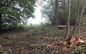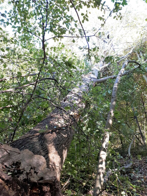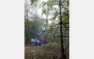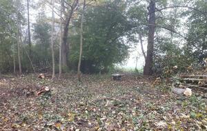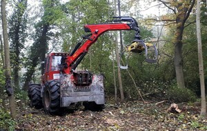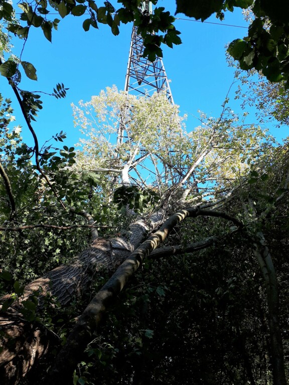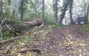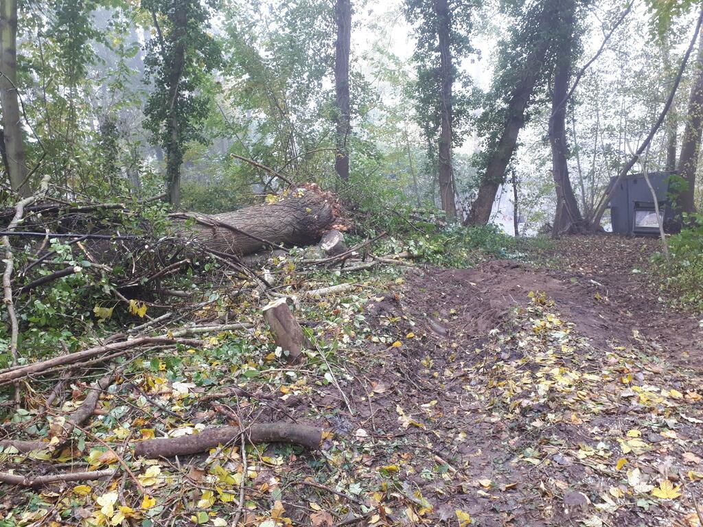 Le dernier coup de vent a fait tomber un gros peuplier sur le pylône à l' arrière du terrain. L'entreprise Holzinger a été mandatée pour l'abattre et sécuriser le parcours. Leur passage ne passe pas inaperçu ...